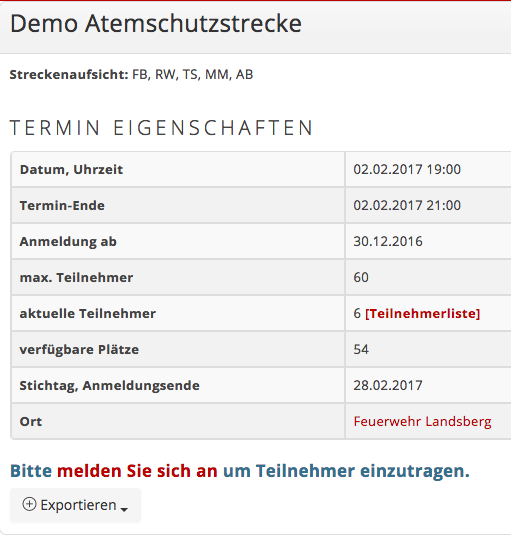 Besuchen Sie hierzu einfach die Seite des Fachbereichs Atemschutz oder die Terminseite und klicken Sie auf einen Termin der Atemschutzstrecke.